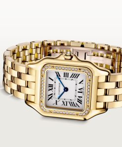 Designed in the 1980s, the Panthère de Cartier watch takes its name from the bracelet of the same name. Its ultra-flexible structure echoes the movements of the Maison’s emblematic animal. Both a watch and a piece of jewelry, it is a veritable fashion icon for women with bold style.