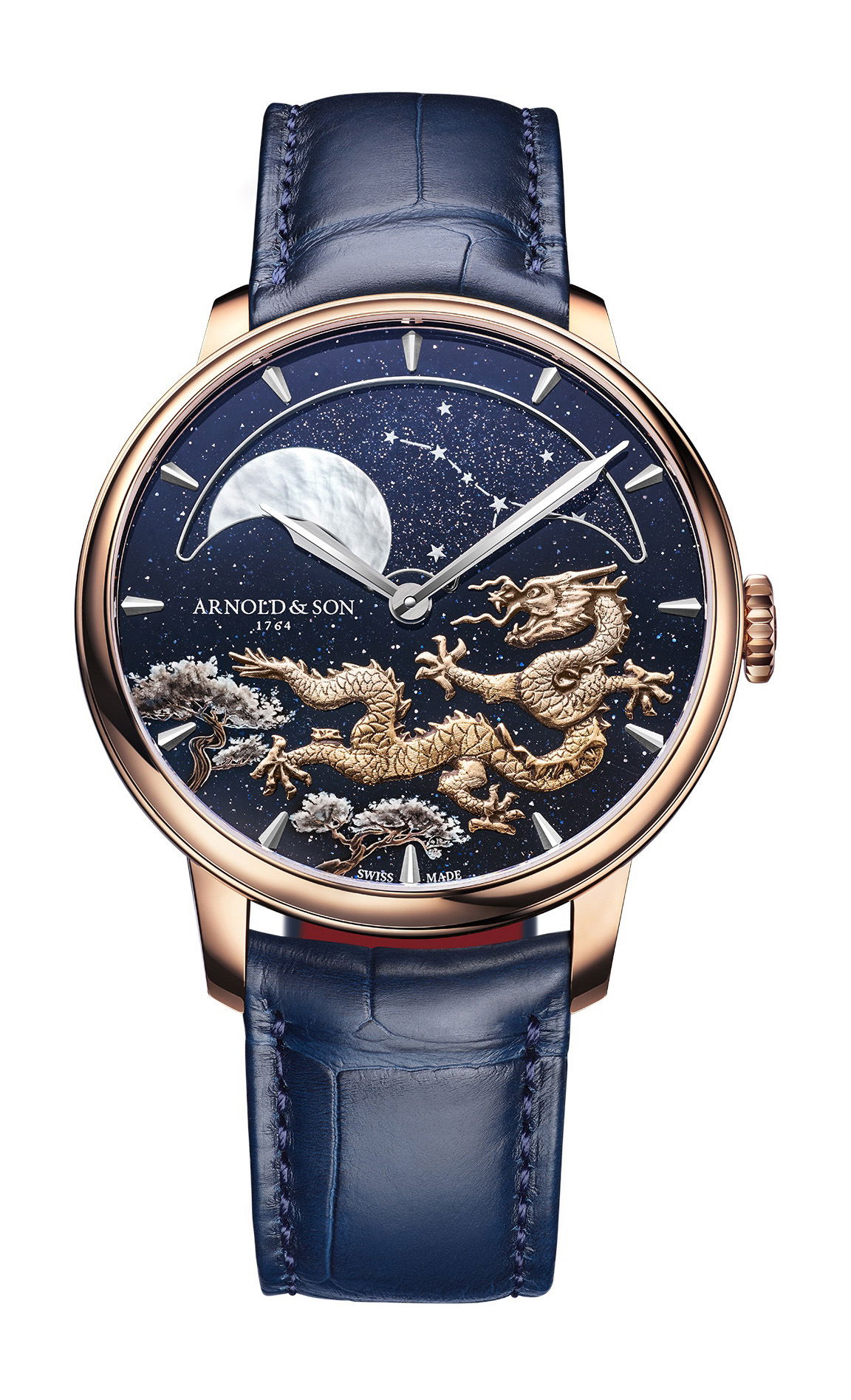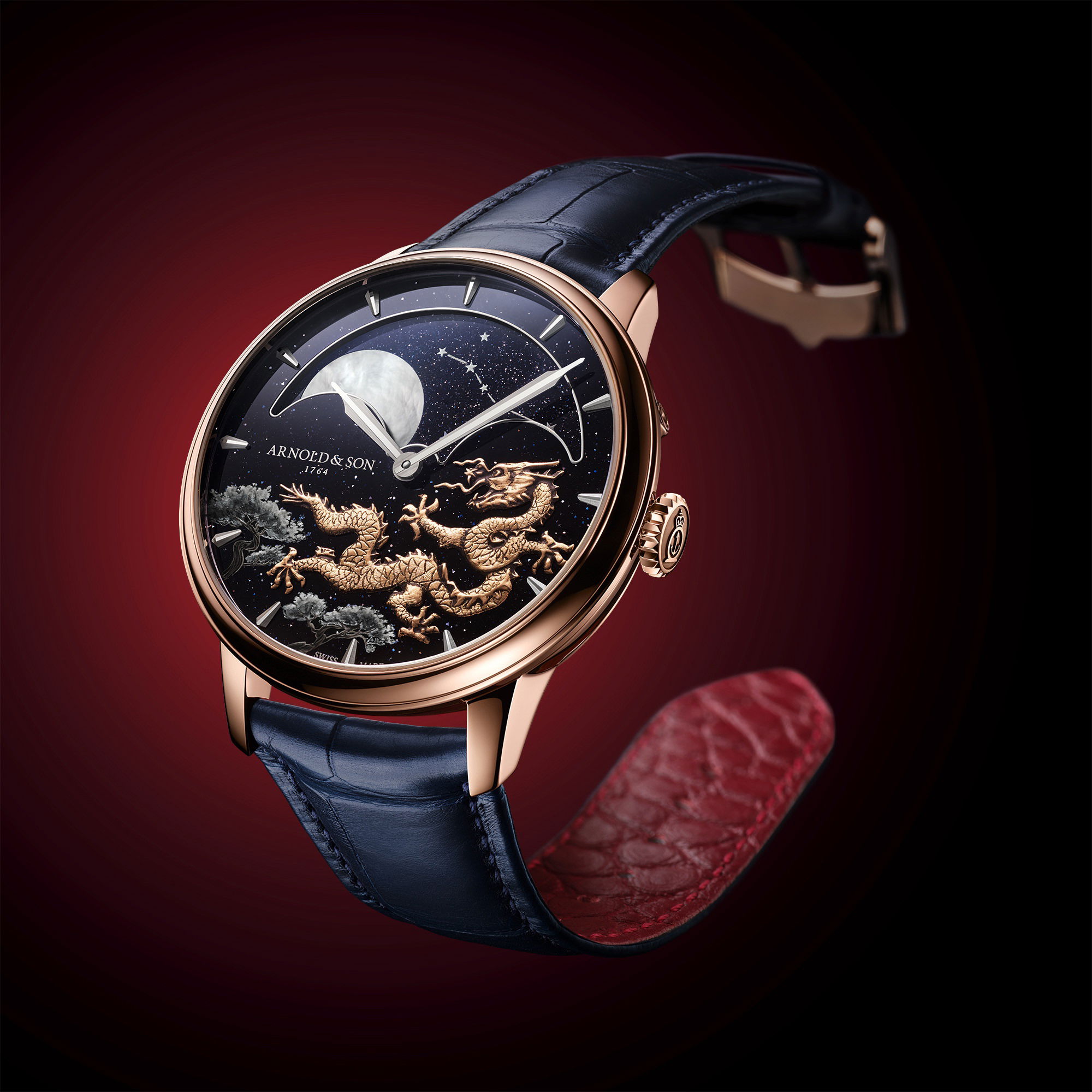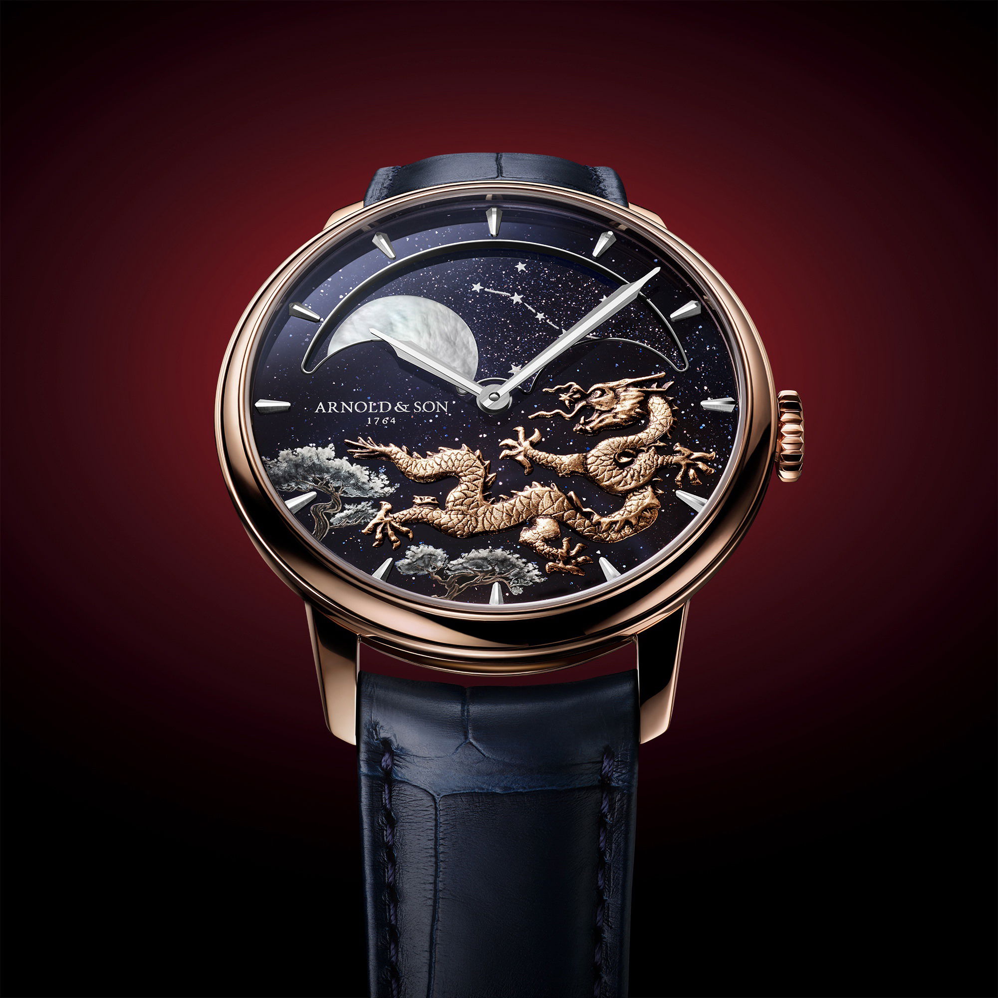 As we usher in the Wooden Dragon year on February 10, 2024, Arnold & Son introduces the Perpetual Moon 41.5 Red Gold timepiece, a limited edition marvel in just eight pieces each that encapsulates the essence of fine watchmaking, sculpture, and miniature painting. This magnificent creation, which debuts on February 10, 2024, features a rose gold dragon gracefully set against a mother-of-pearl moon, symbolizing the Wooden Dragon’s attributes of calm determination, introspection, and generosity—a fitting homage to the Chinese Zodiac sign for the year 2024.