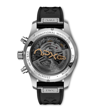 Dedicated to the fictional APXGP team from F1® THE MOVIE, the Pilot’s Watch Chronograph 41 APXGP features a design in the team’s colors with black, gold and white elements.