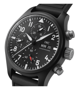 The Pilot’s Watch Chronograph 41 TOP GUN continues the tradition of black ceramic chronographs in the TOP GUN collection in an ergonomic 41 millimetres size.