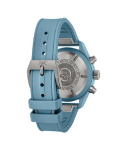 The Pilot’s Watch Chronograph 41 TOP GUN Miramar features a ceramic case in a color called IWC TOP GUN Miramar, a light blue shade developed in collaboration with PANTONE®.
