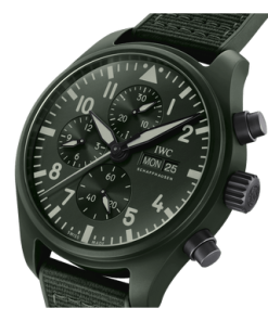 The Pilot’s Watch Chronograph TOP GUN Edition “Woodland” is the first IWC watch featuring a case in newly engineered, dark green ceramic.