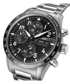 The Pilot’s Watch Performance Chronograph 41 AMG features a 41-millimetre titanium case, a black dial, nickel noir hands and appliques and a titanium bracelet.