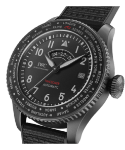 The Pilot’s Watch Timezoner TOP GUN Ceratanium® is the first TOP GUN model to feature a Timezoner function to change between different time zones effortlessly.