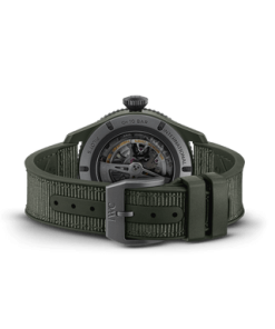 The Pilot’s Watch Timezoner TOP GUN Woodland features a case made of dark green ceramic inspired by the uniforms and flight suits of elite naval aviators.