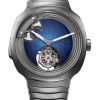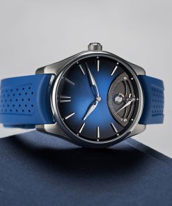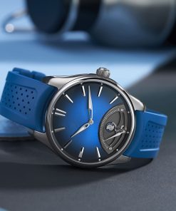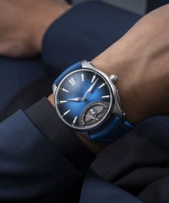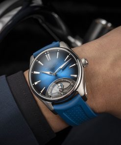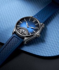 The retrograde mechanism, powered by the HMC 250 automatic winding movement, was developed in collaboration with Agenhor SA. This model highlights H. Moser & Cie.’s commitment to innovation while retaining the brand’s signature elegance and minimalism.