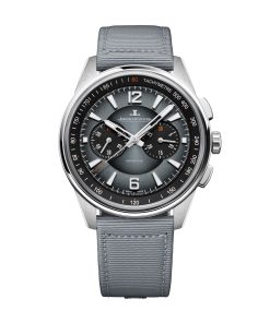 Jaeger-LeCoultre sharpens the focus of its Polaris collection with a new chronograph that showcases a richly layered Ocean Grey lacquer dial. The dial is a visual and technical statement, composed of 35 hand-applied layers across three concentric zones, each finished differently to play with light and depth. A gradient effect moves from steely silver to smoky grey, interrupted by vivid orange accents that underscore its sportier side. The dial remains effortlessly readable thanks to bold trapezoid markers, skeletonised hands, and generous luminescent treatment, all of which sit comfortably within a familiar Polaris layout that favors symmetry and clarity.