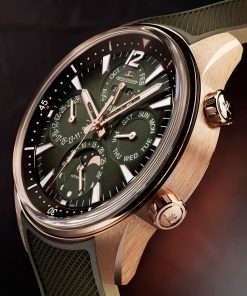 The Polaris Perpetual Calendar, introduced in 2022, features one of watchmaking’s most complex complications: the perpetual calendar. This mechanical complication automatically adjusts for varying month lengths and leap years, requiring no manual correction until 2100 and only on certain centenaries thereafter. It is powered by the automatic Jaeger-LeCoultre Calibre 868, offering a 70-hour power reserve, entirely designed and assembled by Jaeger-LeCoultre.