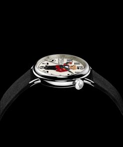 The watch showcases the Lunar New Year Bear in a stainless steel 38-mm case. The bear is 3D printed on a cream-white lacquered dial. It features prominent black Arabic numerals, a railway minute track, and the ‘Polo Ralph Lauren’ logo at 9 o’clock. The hands for hours, minutes, and seconds are glossy black, complementing the dial’s design. The Lunar New Year Polo Bear is powered by the Ralph Lauren RL200 caliber. This mechanical self-winding Swiss movement is hand-finished with vertical Côtes de Genève stripes and circular graining, known as perlage.
