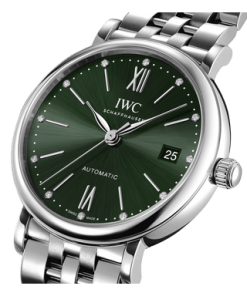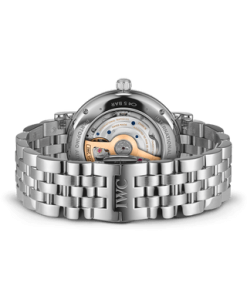 The Portofino Automatic 37 features the IWC-manufactured 32111 caliber and a see-through sapphire glass back displaying the movement.