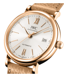 The Portofino Automatic 37 features the IWC-manufactured 32111 caliber and a see-through sapphire glass back displaying the movement.