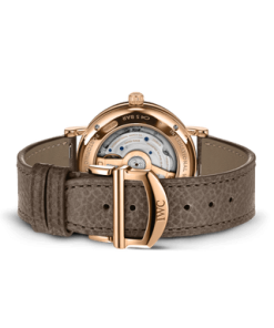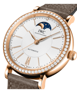 The Portofino Automatic Moon Phase 37 features the IWC-manufactured 32800 caliber and a see-through sapphire glass back displaying the movement.