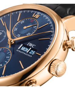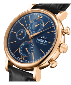 For the first time, the Portofino Chronograph is offered in an 18-carat 5N gold case with a blue dial.