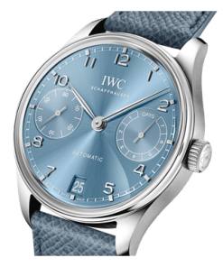 The origins of the Portugieser date back to the late 1930s, when IWC Schaffhausen used a high-precision pocket watch movement to create a distinctively large wristwatch with chronometer precision. First introduced in 2000, the Portugieser Automatic 42 features an open, balanced dial, with a power reserve indicator at 3 o’clock and the small seconds positioned on the opposite side at 9 o’clock.