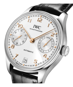 The origins of the Portugieser date back to the late 1930s, when IWC Schaffhausen used a high-precision pocket watch movement to create a distinctively large wristwatch with chronometer precision. First introduced in 2000, the Portugieser Automatic 42 features an open, balanced dial, with a power reserve indicator at 3 o’clock and the small seconds positioned on the opposite side at 9 o’clock.