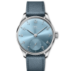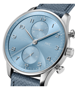 Since 1998, the Portugieser Chronograph has brought a touch of sporty elegance to the Portugieser collection from IWC Schaffhausen. The IWC-typical, vertical arrangement of the subdials displays the stopped minutes directly at the 12 o’clock position and places the small seconds at 6 o’clock. This layout enhances readability and has made the Portugieser Chronograph a design icon. Another feature is the inner flange printed with a quarter-second scale, enabling high-precision stop-time readings.