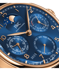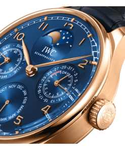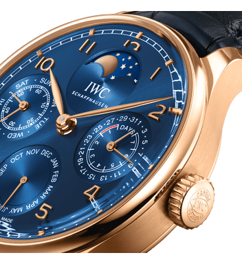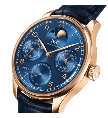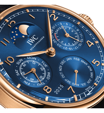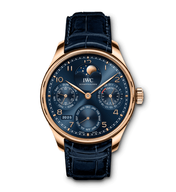 This special edition of the Portugieser Perpetual Calendar captivates with a nautical design in dark blue and gold.