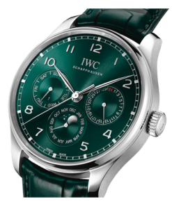 This version of the Portugieser Perpetual Calendar 42 presents the popular complication on a green dial.