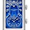 The Prominente Prominente Icónico comes in an imposing stainless steel case featuring rhodium-plated hour and minute hands, clearly indicating the time. Alongside these, there’s a central sweep seconds hand and a date display, offering only the essential functions for timekeeping. The design of the Prominente Icónico prioritizes clarity and elegance, with its elongated case blending intricate curves with sharp lines. The stepped sides of the case are noticeable from the front, while the smooth curves become apparent when viewed from the side, giving it a gentle profile. The dial features elaborate Arabic numerals of varying sizes, adding a touch of vintage charm. A chemin de fer encircles the dial, enhancing readability and providing a stylish separation from the case.