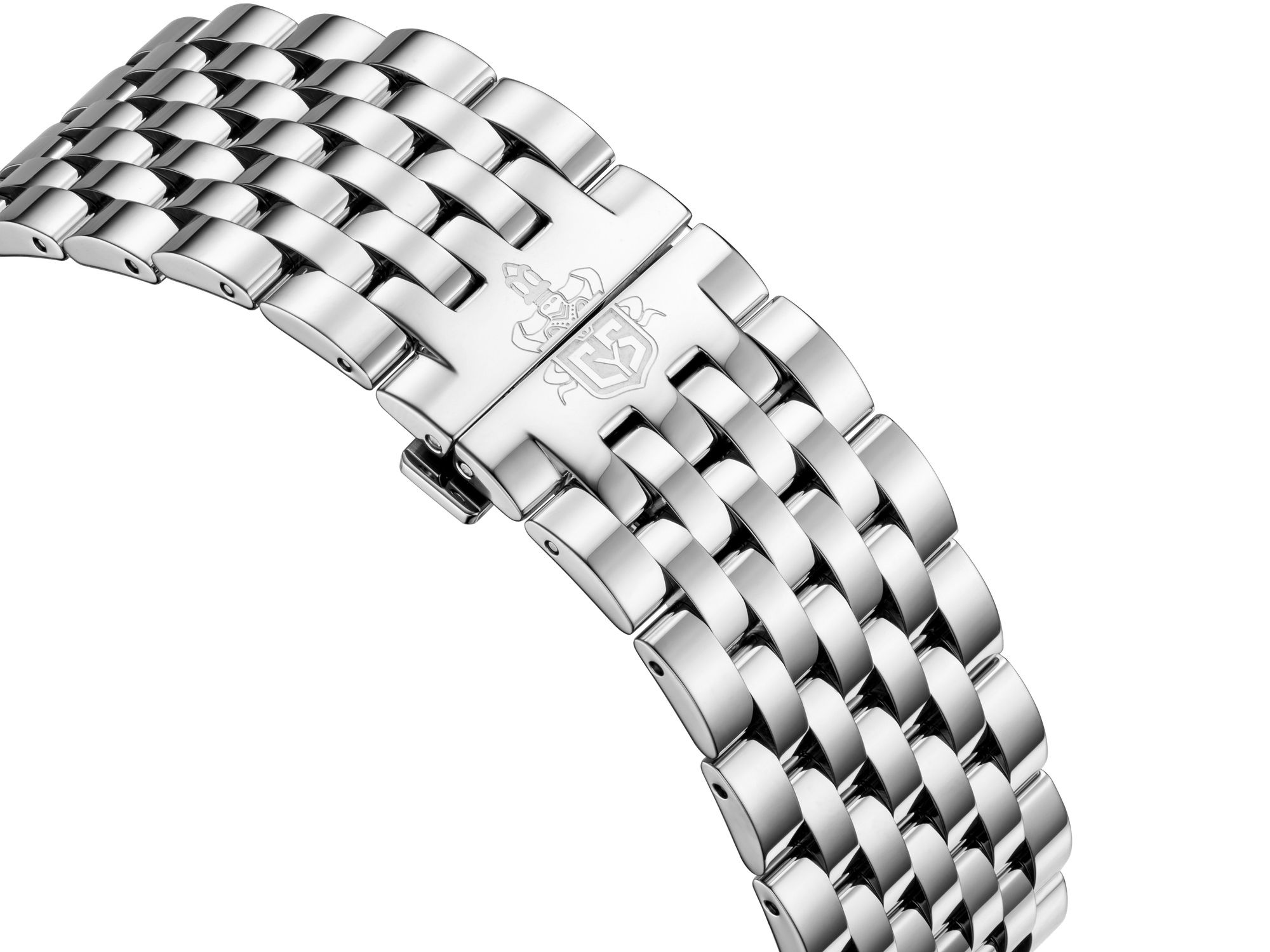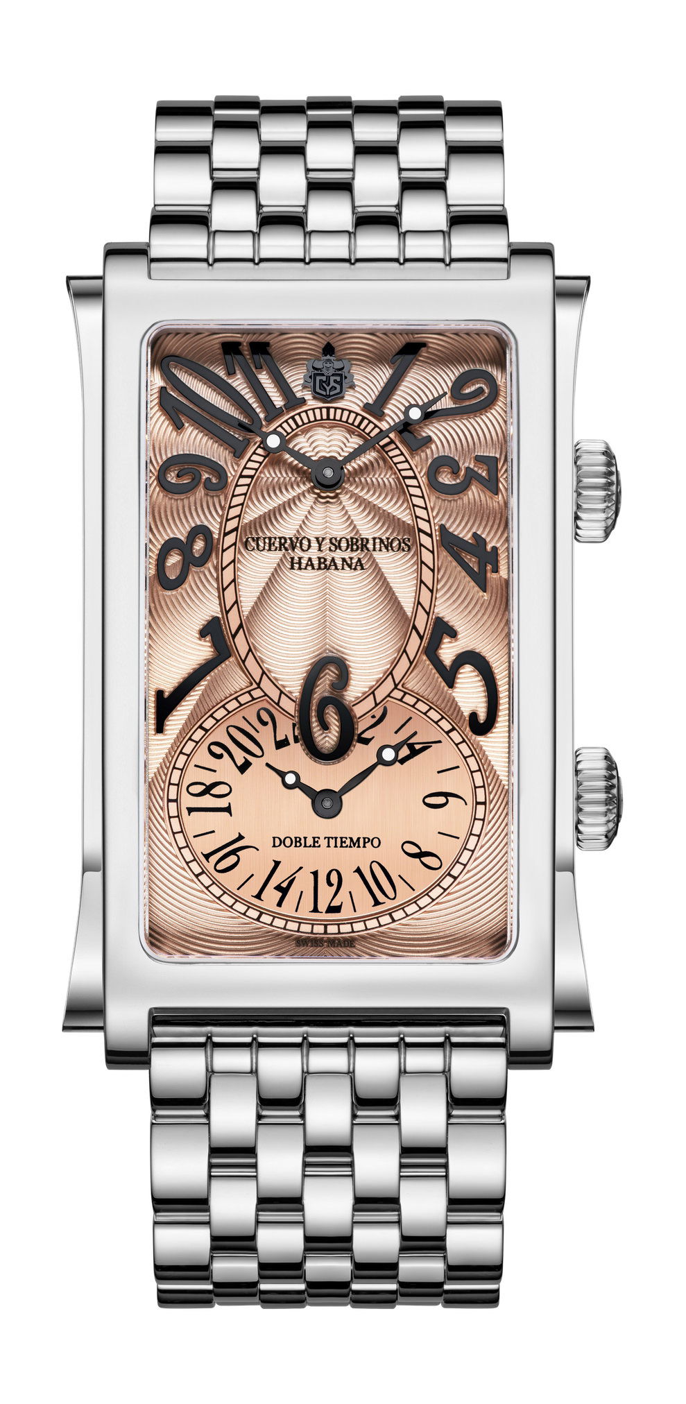 The Prominente Doble Tiempo comes with a choice of a dark brown alligator strap or stainless steel bracelet and is limited to 138 pieces, honoring the year the original Prominente was released in 1938. Cuervo y Sobrinos has preserved the essence of the iconic Prominente while enhancing its appeal.