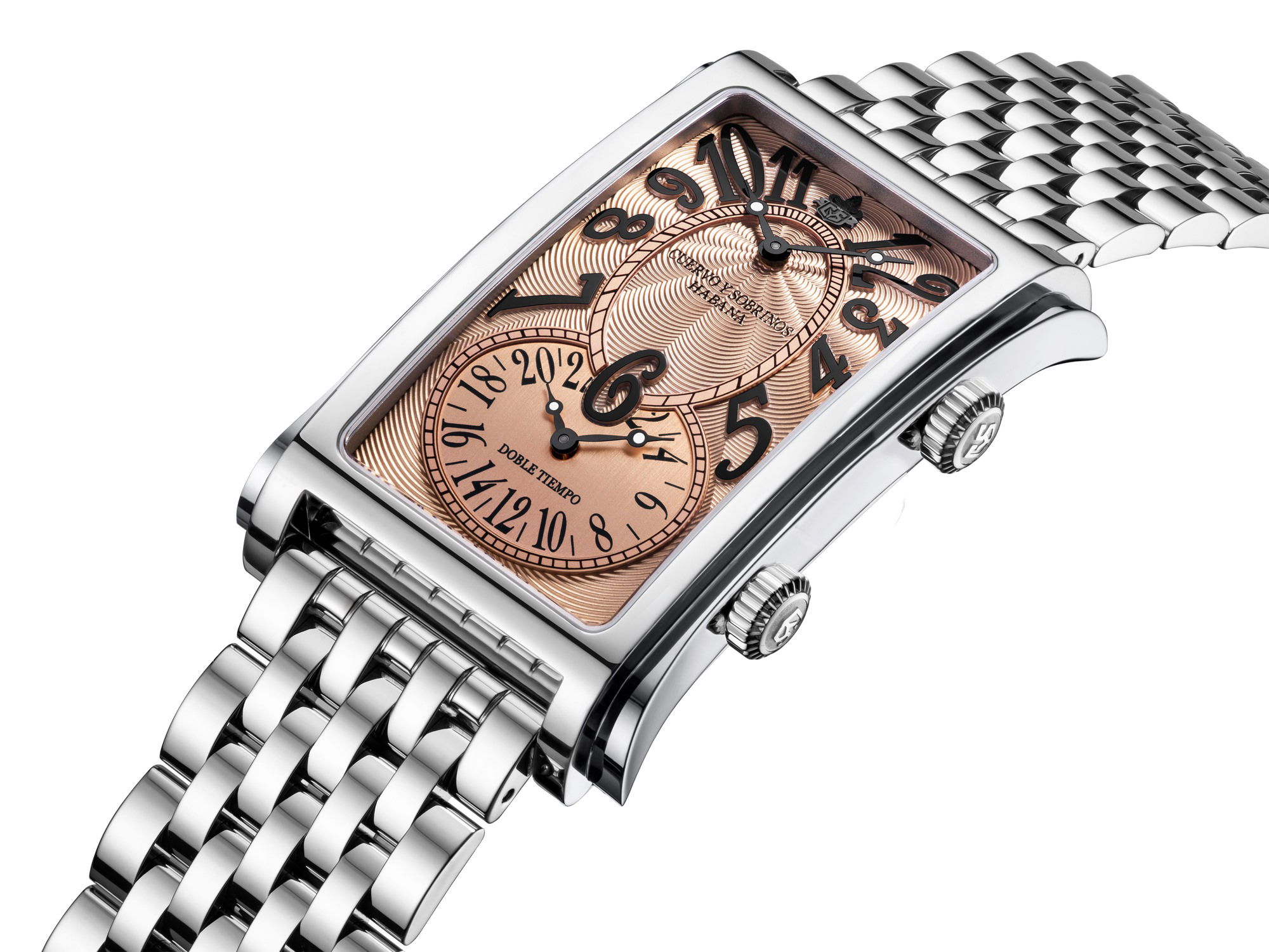 In 2023, Cuervo y Sobrinos celebrated the 85th anniversary of its iconic watch, the Prominente, by introducing a new limited-edition model called the Prominente Icónico Doble Tiempo. Unlike typical dual-time watches, this model features two separate movements, allowing it to accurately display times even with 30 or 45-minute offsets.