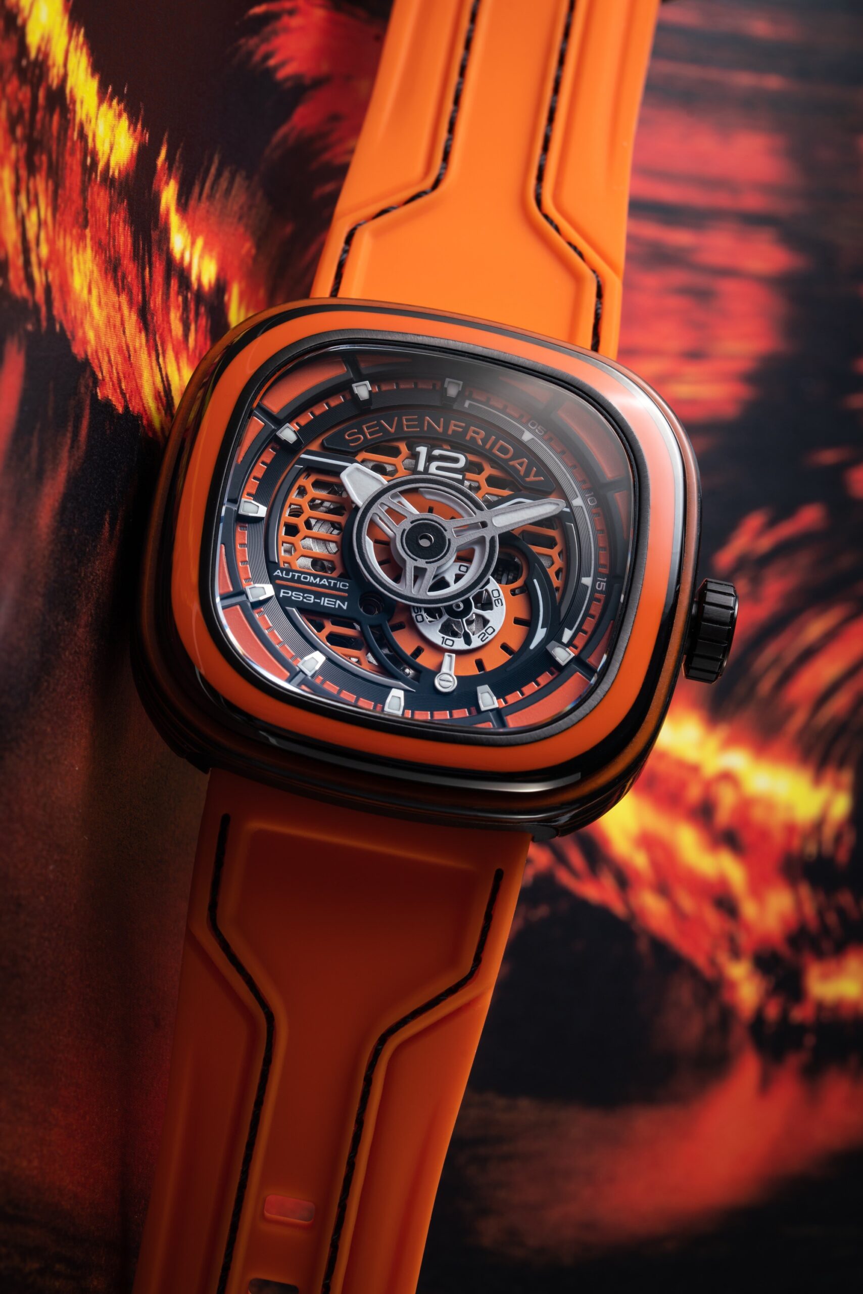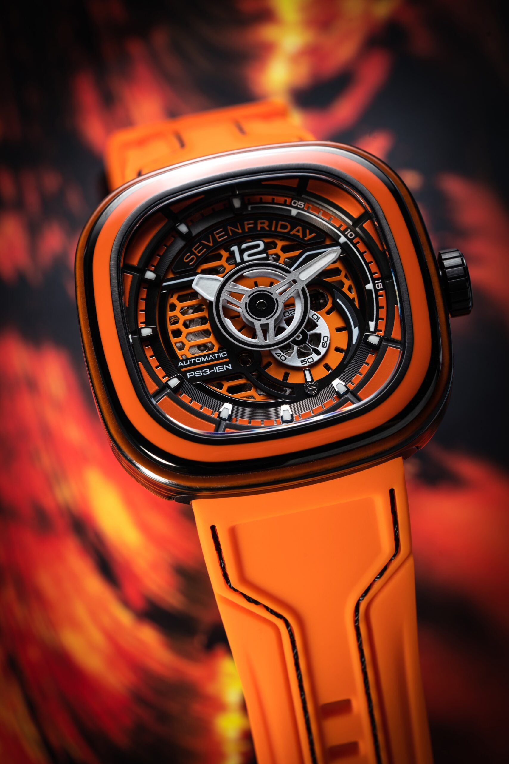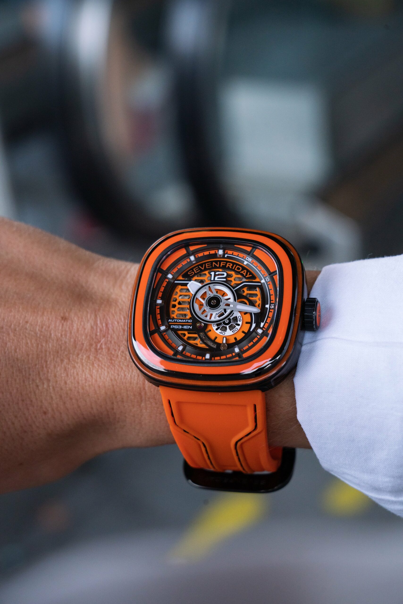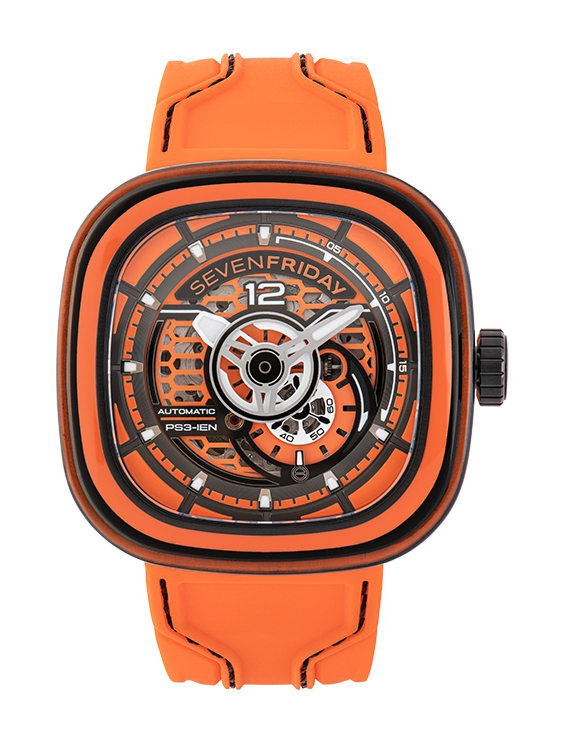 In a world dominated by steely grays, even robots wear bright orange to warn humans. This inspired SEVENFRIDAY to create a new set of colored P-series watches with distinctive silicone animation rings.