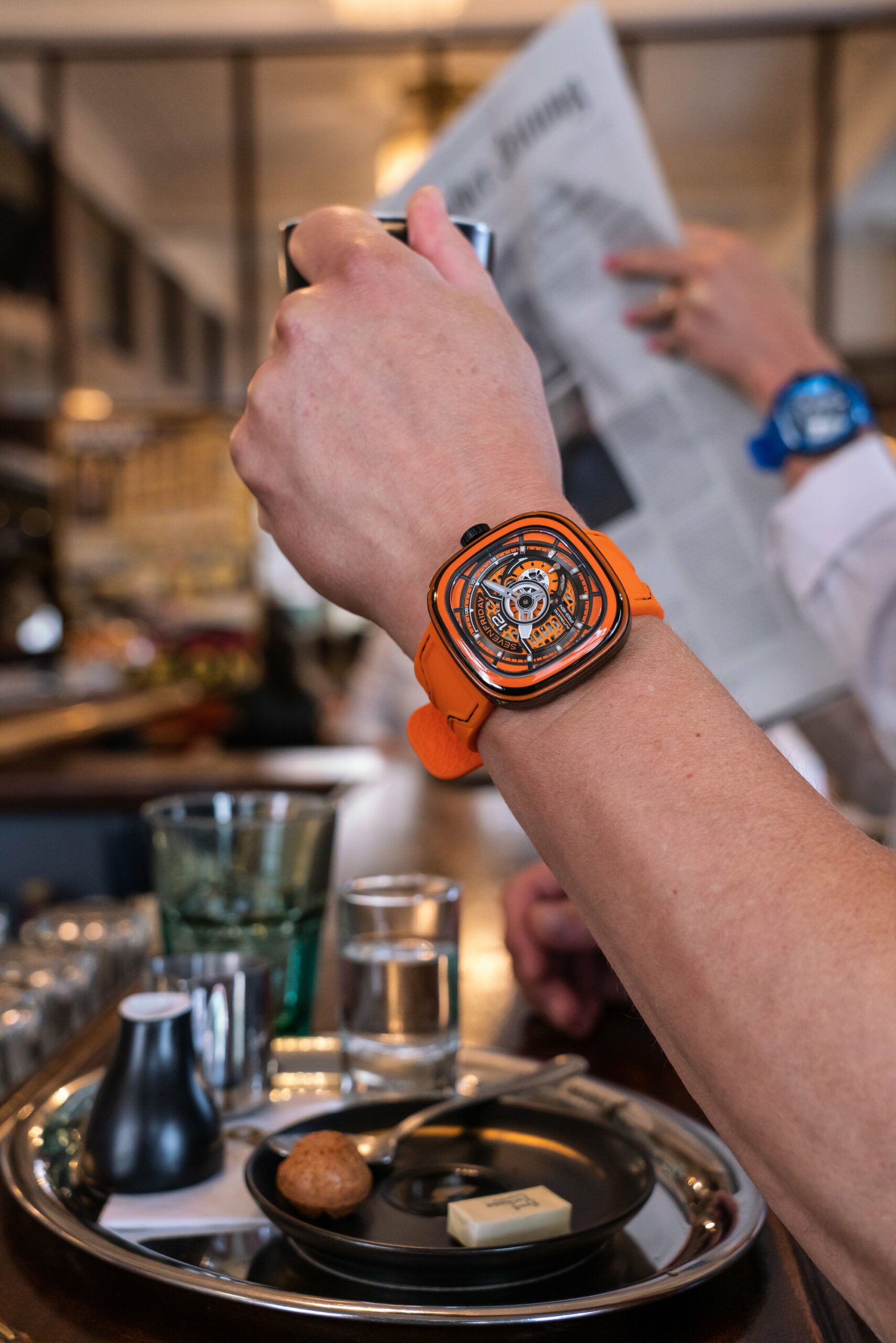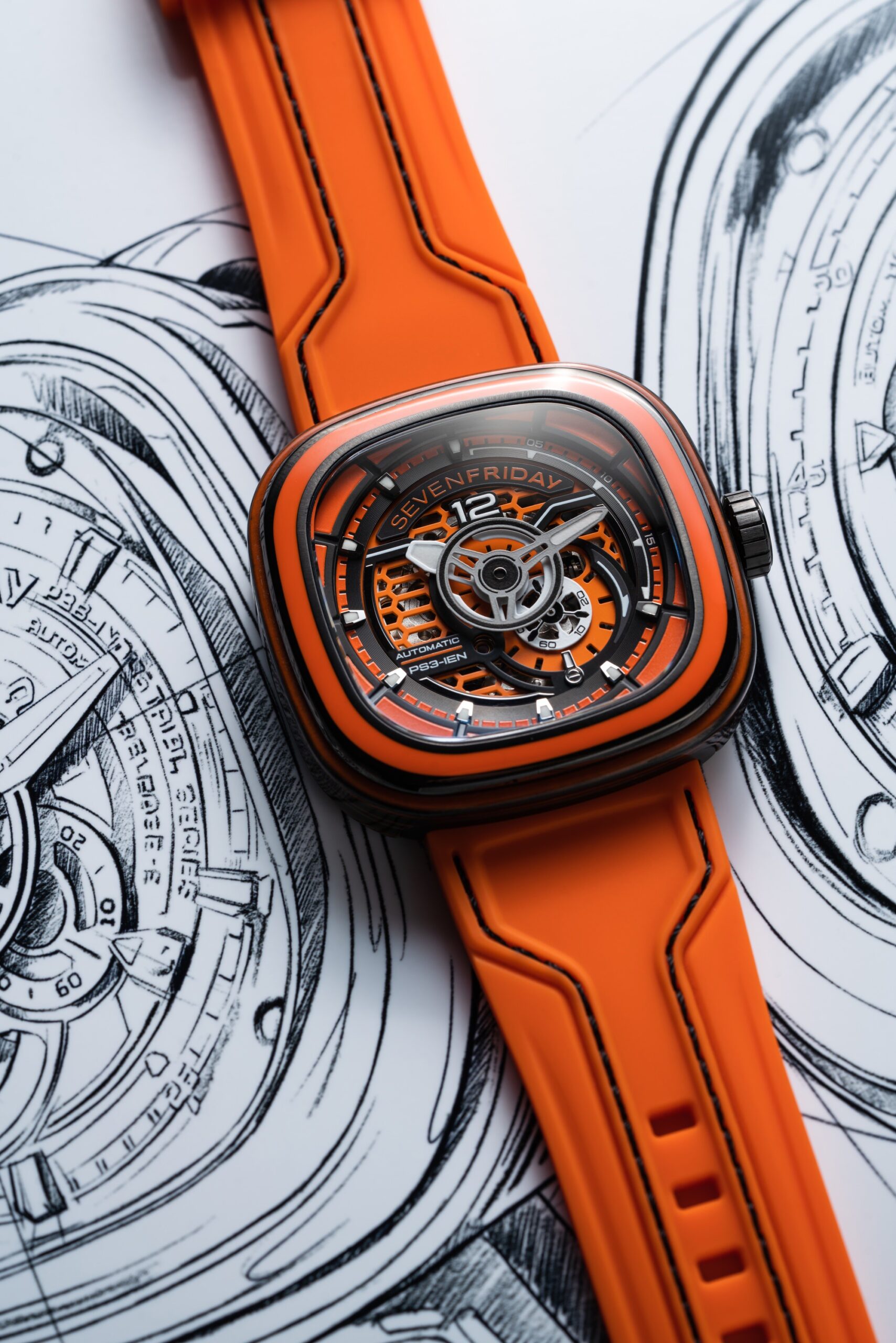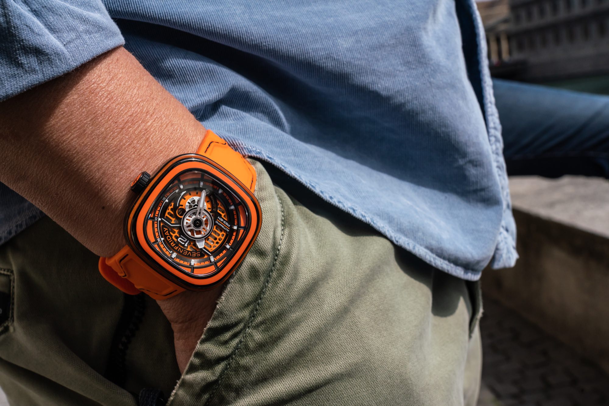 In a world dominated by steely grays, even robots wear bright orange to warn humans. This inspired SEVENFRIDAY to create a new set of colored P-series watches with distinctive silicone animation rings.