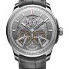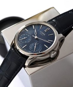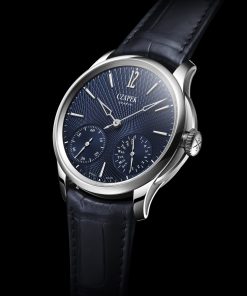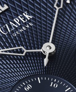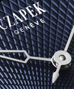 CEO Xavier de Roquemaurel mentions that the new design has been influenced by the biomechanical style of artist H.R. Giger, achieving an organic and fluid aesthetic. The “Double Soleil” guilloché pattern is inspired by the parhelion phenomenon, giving the dial a radiant appearance that plays intriguing visual tricks, available in Deep Blue or Tuxedo Black. The watch features a manually wound movement with a 7-day power reserve, with open-worked bridges to accentuate the craftsmanship, embodying the essence of haute horlogerie.
