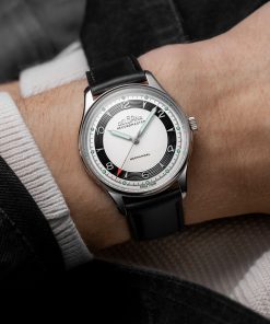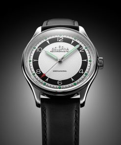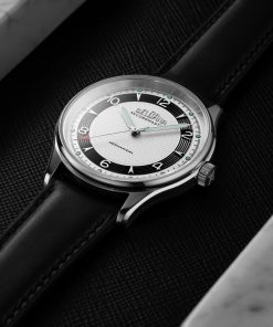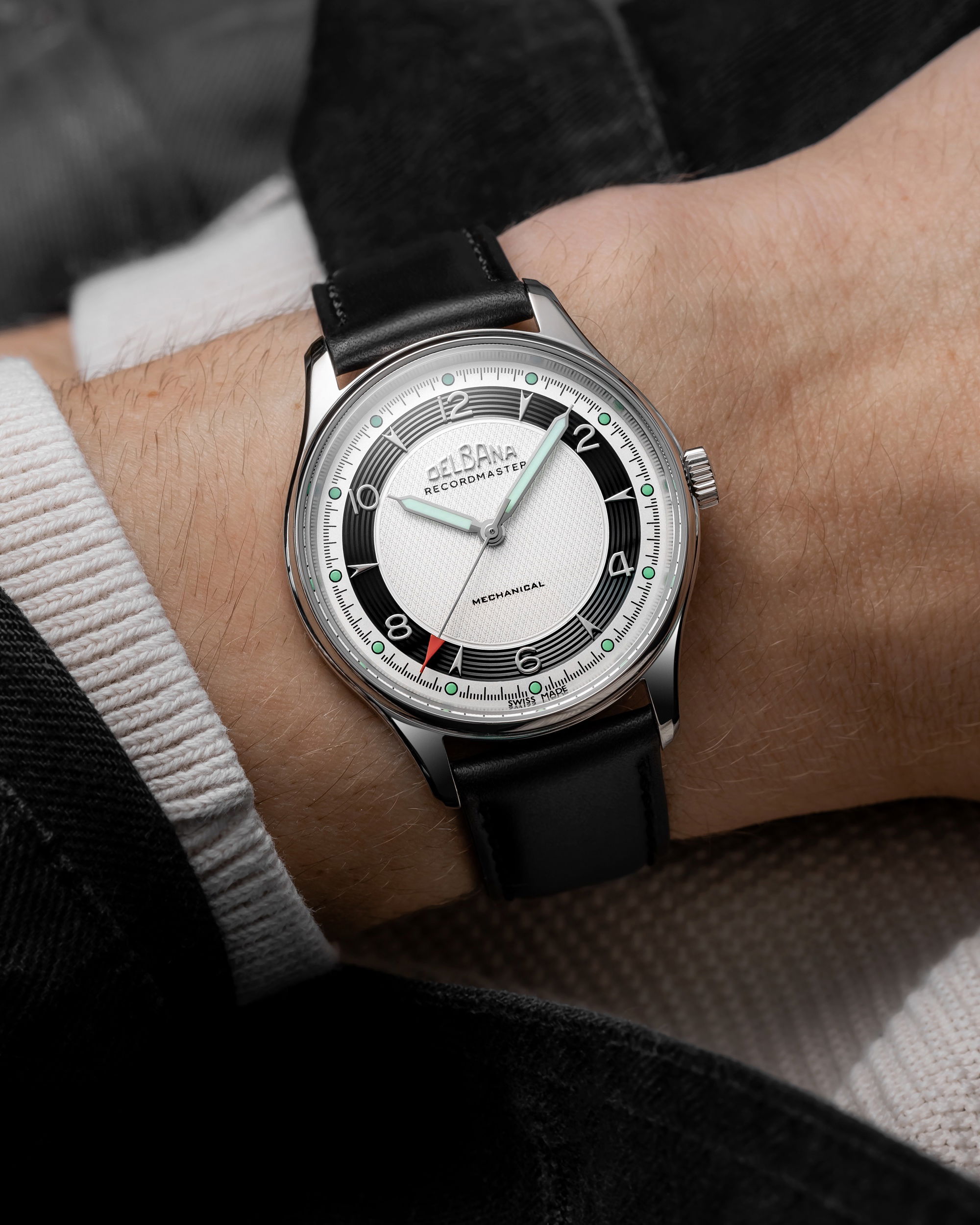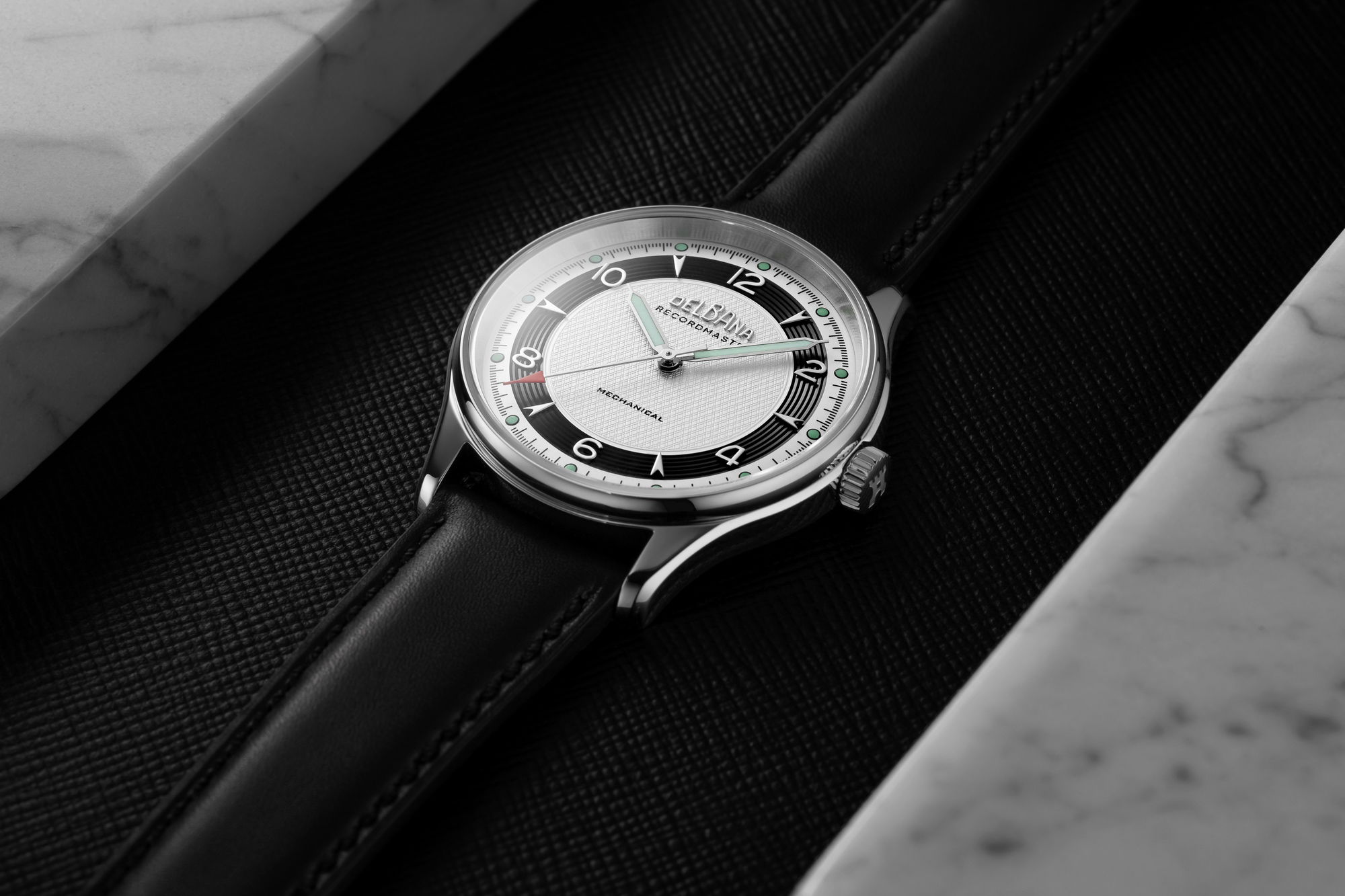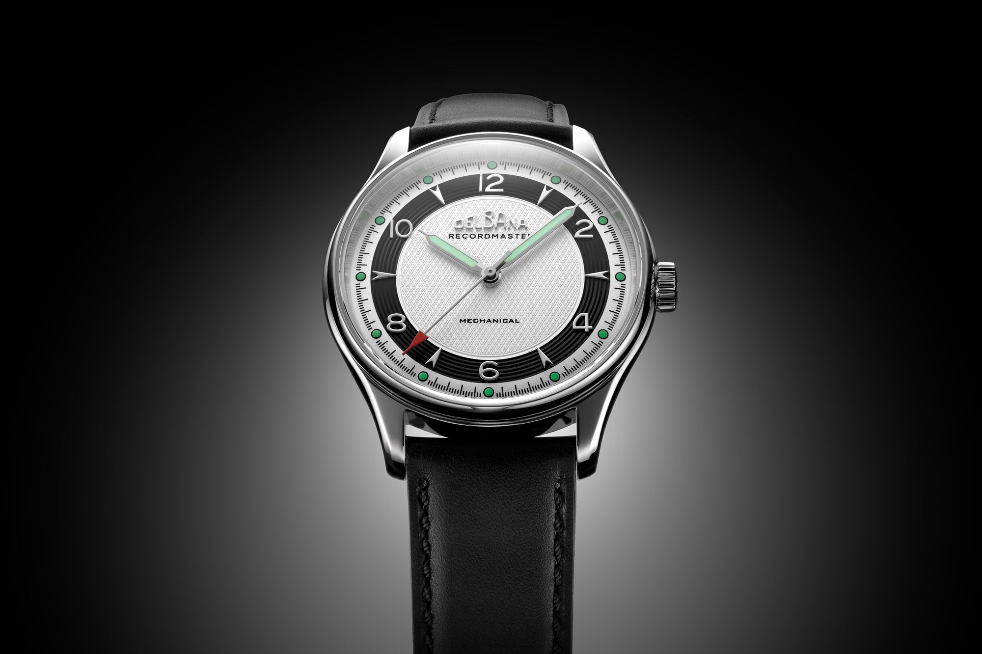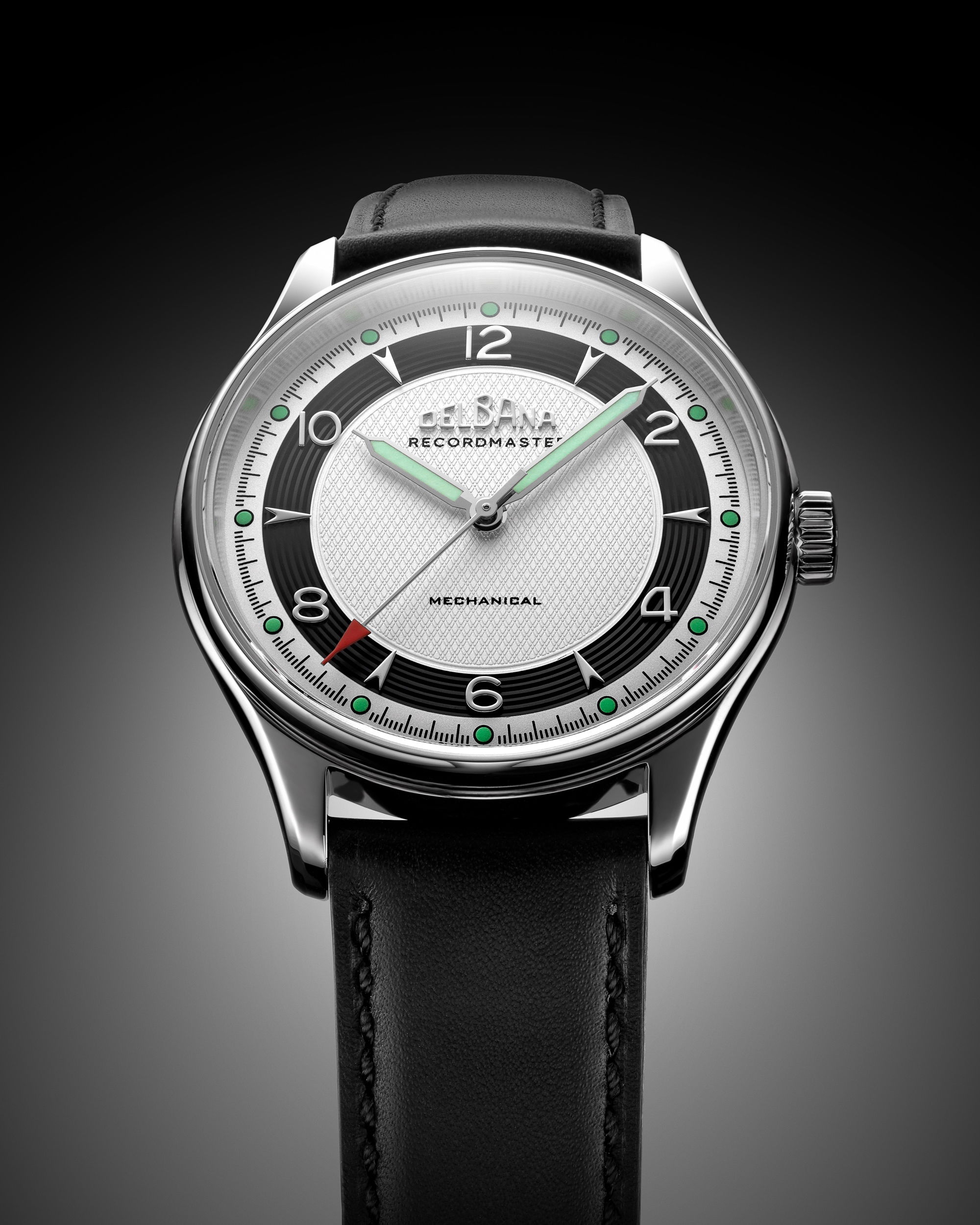 The Delbana Recordmaster is a limited edition automatic watch celebrating 90 years of fine watchmaking. Originally released in the 1950s, it pays tribute to the Golden Age of vinyl music. This watch offers affordability and style for both men and women. Delbana, founded in 1931 in Switzerland, combines Swiss craft with Italian style. The brand transitioned to quartz movements while maintaining design excellence. In the 1950s and 1960s, Delbana’s mechanical watches were popular, coinciding with the rise of vinyl records. The Recordmaster features a white microgroove dial reminiscent of vinyl records, with retro-style indices and a silver guilloche center. It boasts mint green luminous hands and a red seconds hand. The 40mm stainless steel case is versatile, and the watch is powered by the reliable Sellita SW200 automatic movement, visible through the exhibition caseback.