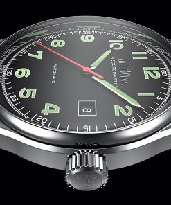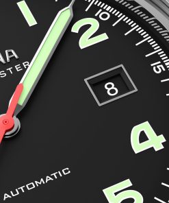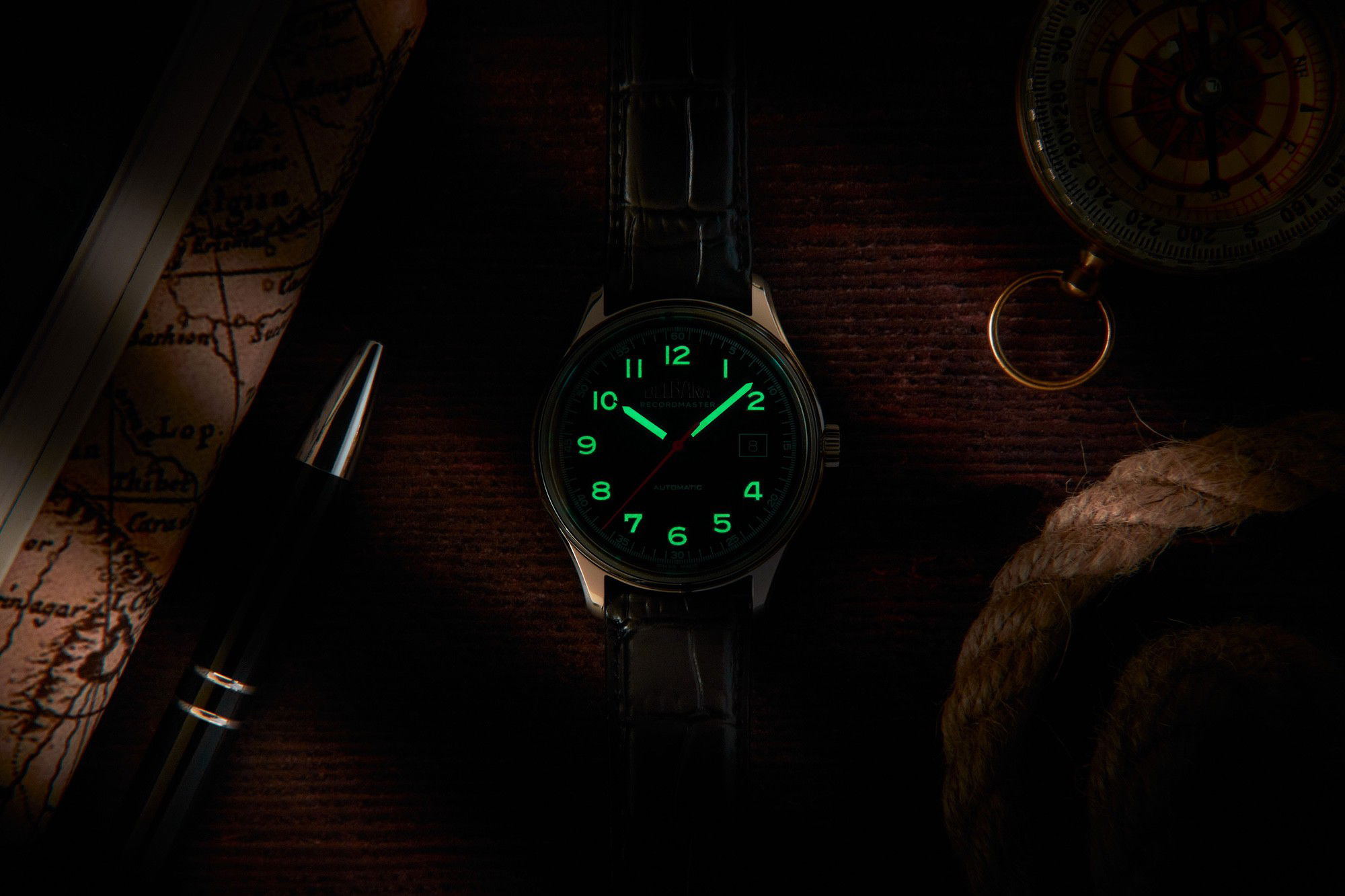 The dial of the Recordmaster Mechanical features a minute track with oversized circular luminous hour markers that encircle the watch’s distinctive stepped microgrooves. The minute and hour hands are luminescent, while a striking red central seconds hand imparts a vintage and classic touch. The transparent case back allows users to admire the unmistakable quality of a Swiss-Made mechanical timepiece, revealing the SW210-1 hand-winding movement.