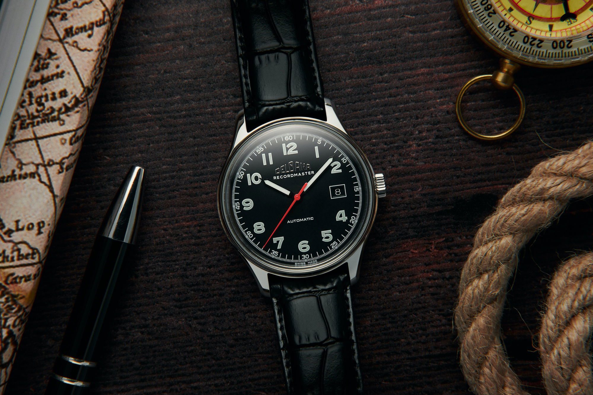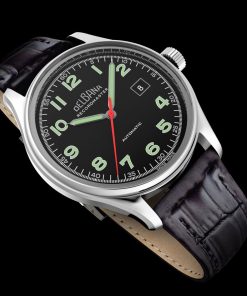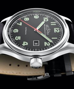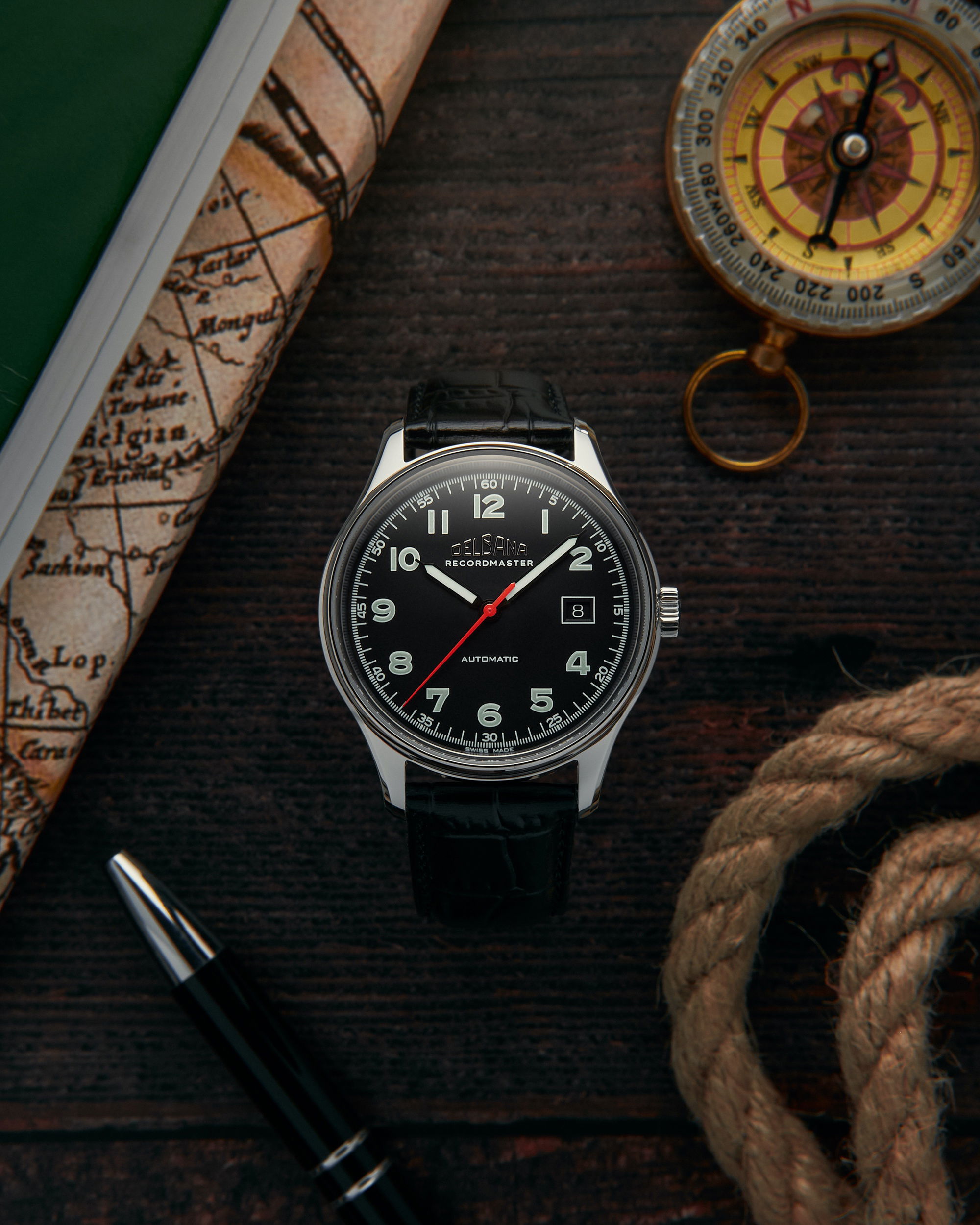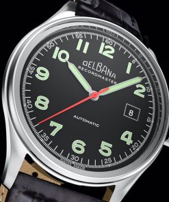 The Delbana Recordmaster Mechanical watch underscores the company’s enduring dedication to mechanical timepieces while honoring their rich 90-year history in watchmaking. The Recordmaster Mechanical seamlessly merges classic performance with a modern aesthetic. This timepiece pays homage to the original 1950s model and the milestone Recordmaster I while incorporating novel elements to give it a revitalized appearance. One of its most notable features is the manual winding movement. This characteristic encourages wearers to connect tactilely with their watch, evoking a simpler era when wristwatches were indispensable, devoid of digital technology. The absence of a date window and the slim 10.8 mm case serve as subtle references to the original vintage design. The watch’s applied arrowhead indexes and vintage Arabic numerals complement the yellow-gold PVD case, creating an elegant and timeless look.