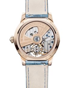 Powered by the automatic Calibre 978 with 45 hours of power reserve. Its tourbillon gears are visible through the dial, with the movement’s intricate hand-finishing displayed via the sapphire case back.