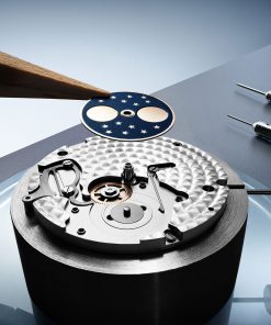 But what makes the 2025 update more than skin-deep is what’s ticking inside: the in-house calibre 925, now with a healthy 70-hour power reserve and a quick-set moon phase adjustment cleverly tucked into the case side. The display is a silvery moon drifting across a softly textured sky, perfectly in tune with the watch’s mechanical heartbeat.