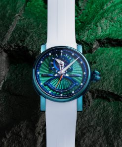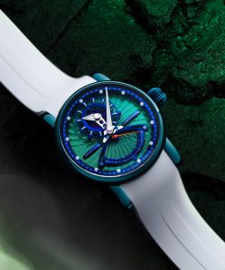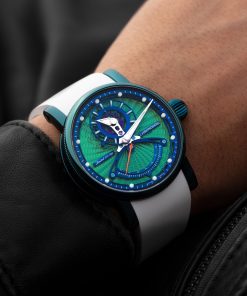 Chronoswiss introduces the ReSec Snake, a limited-edition timepiece that blends bold design with mechanical artistry. Housed in a 42mm titanium case with a color-shifting PVD coating, the Snake shimmers between emerald and turquoise, catching light like scales in motion. Paired with a crisp white rubber strap, it wears with both edge and elegance—striking from every angle.