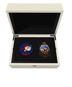 This RESERVOIR x Popeye Camel UAE Edition is limited to 100 pieces, each numbered and presented in a white wooden box featuring “The Popeye Family” and the RESERVOIR and Ahmed Seddiqi & Sons logos. An additional Popeye embroidery adds to the collectible nature of this whimsical and nostalgic design, which will surely captivate fans of the beloved sailor man.