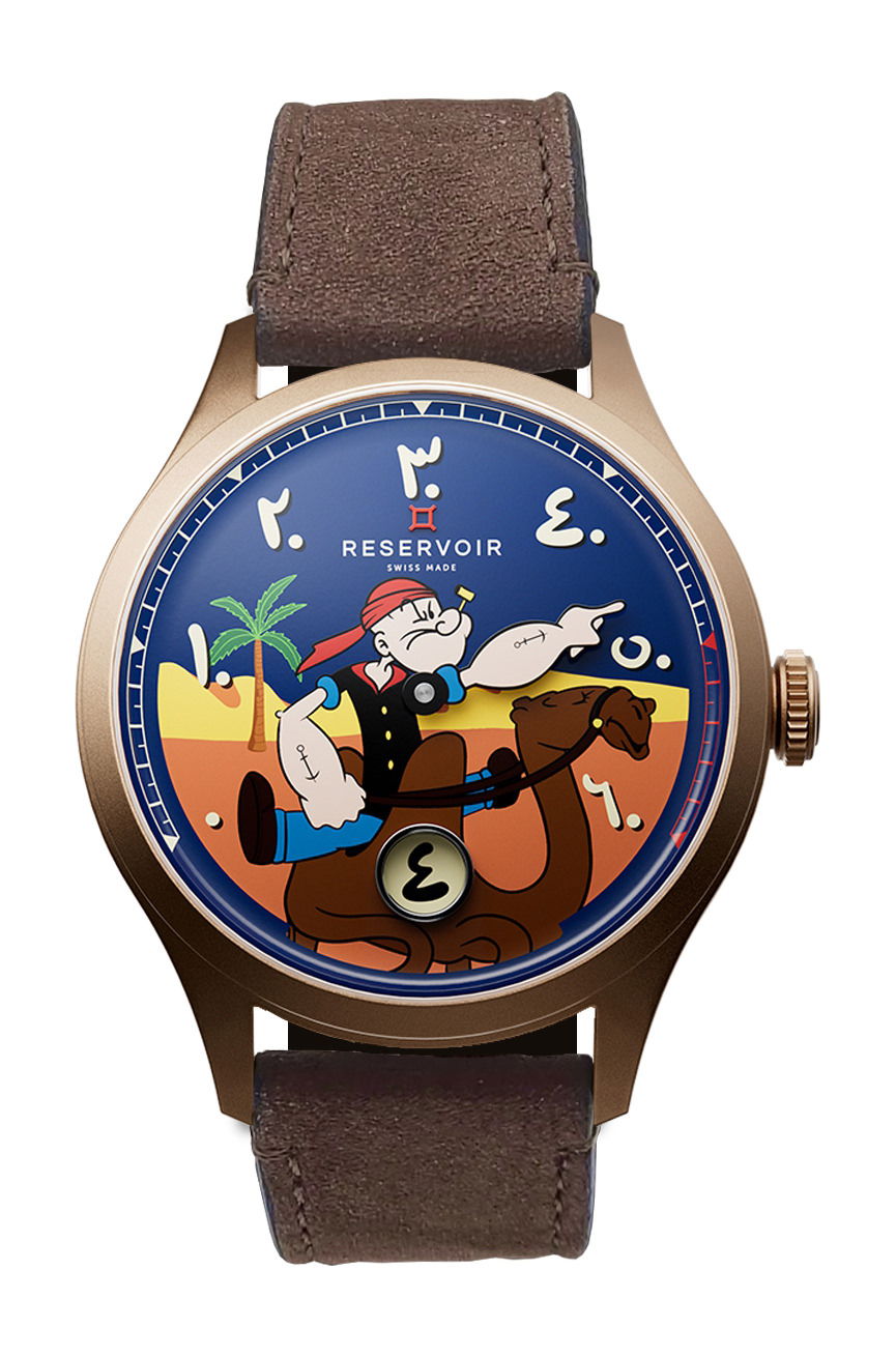 The RESERVOIR watch x Popeye Camel is a special series created by Franco-Swiss watchmaker RESERVOIR for Ahmed Seddiqi & Sons in the UAE. This marks the fourth collaboration that features the iconic comic character Popeye, known for his signature catchphrase, “I yam what’s I yam and dats all what’s I am.”