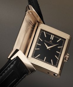 The dial of the Reverso Tribute Enamel ‘Dragon’ mirrors the case-back’s opaque black Grand Feu enamel, offering a simple yet elegant design with faceted appliqué hour-markers and Dauphine hands. Achieving the deep, rich black enamel requires a meticulous process of multiple layering, firing, cooling, and polishing, totaling around 24 working hours.
