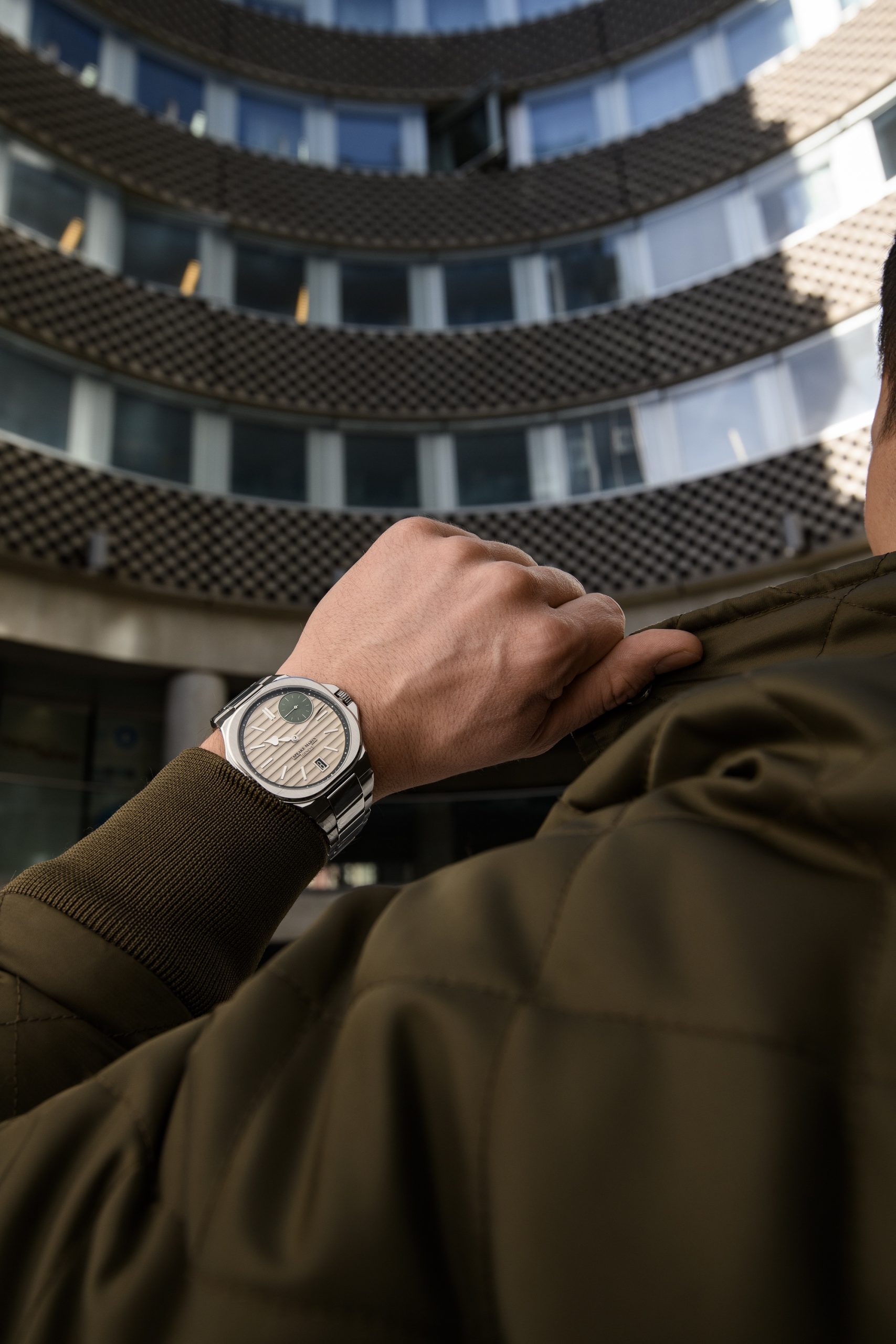 The RIPPLES collection by Speake Marin, launched in 2022, presents the brand’s first sport-chic watch made entirely from stainless steel. Inspired by London’s financial district, the collection features a distinctive “La City” case and a unique dial design with twelve three-dimensional horizontal “ripples.” The heart-tipped hour hand pays homage to Big Ben, connecting the watch to its British heritage.