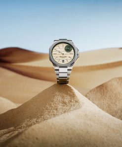 Expanding the RIPPLES collection, Speake Marin introduces the “Ripples Dune date” at Watches and Wonders Geneva 2024. This verison features a dial color reminiscent of desert sand, symbolizing adventure and nature. Limited to only 60 pieces, the watch includes handcrafted dial finishes and a complex case design.