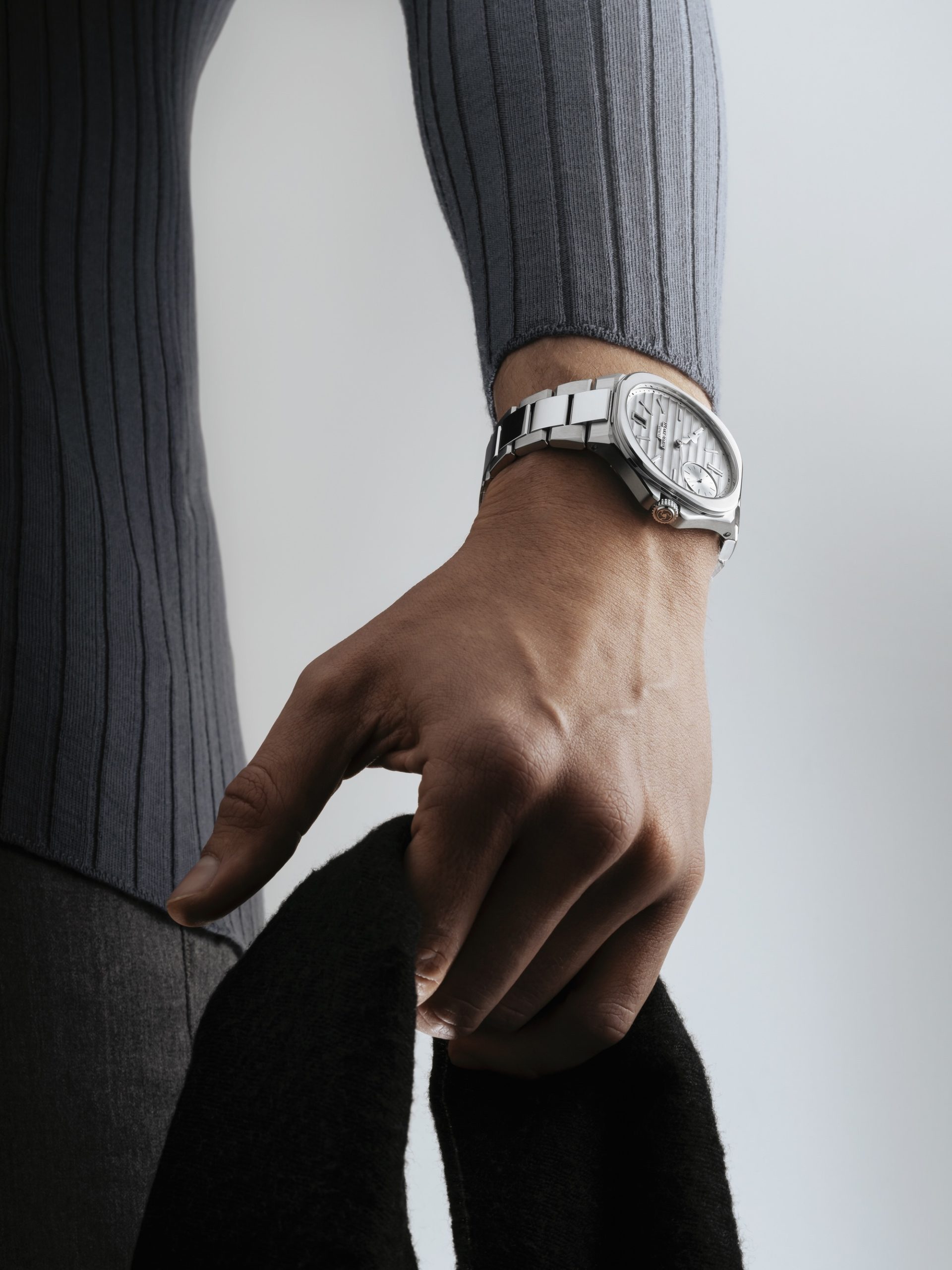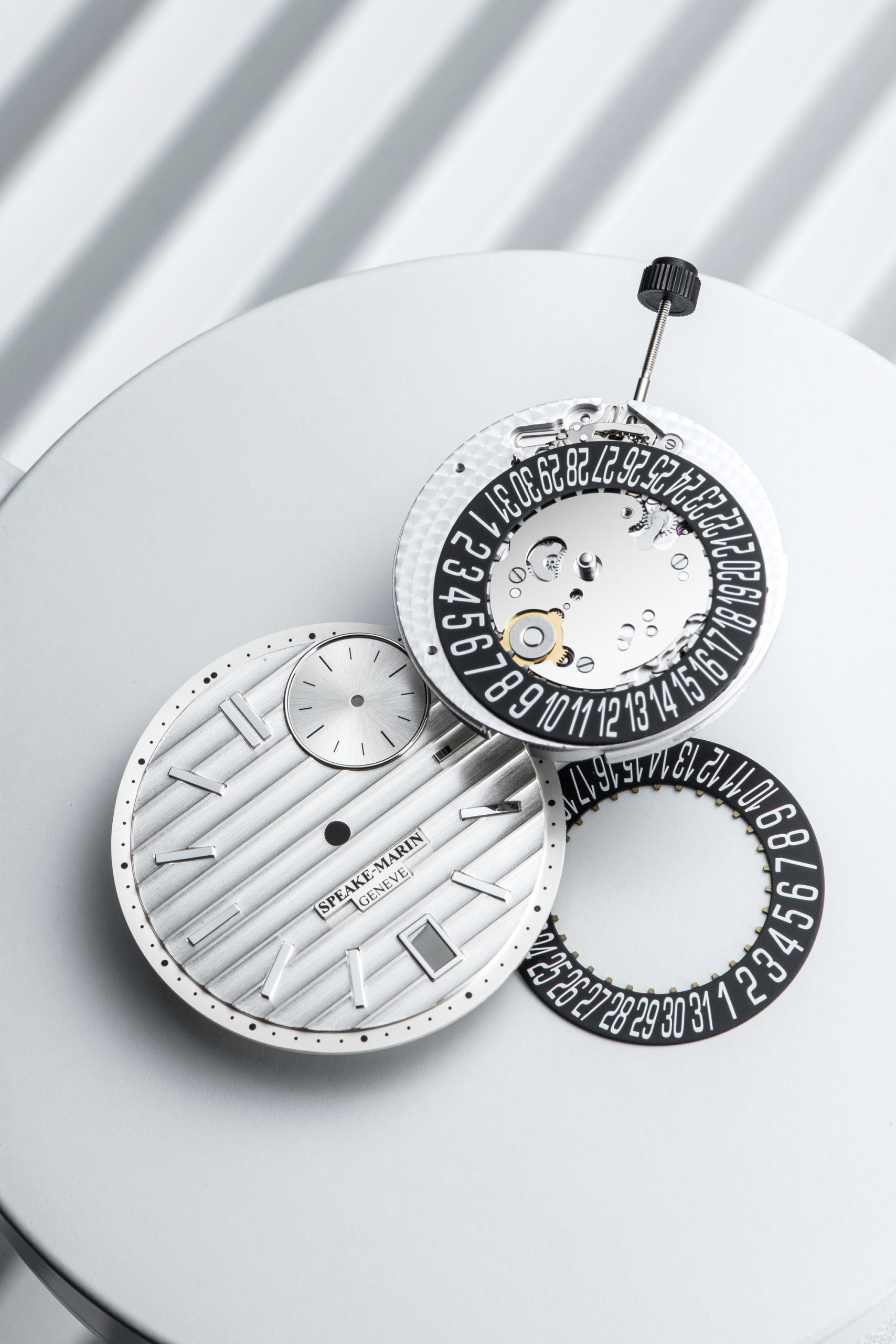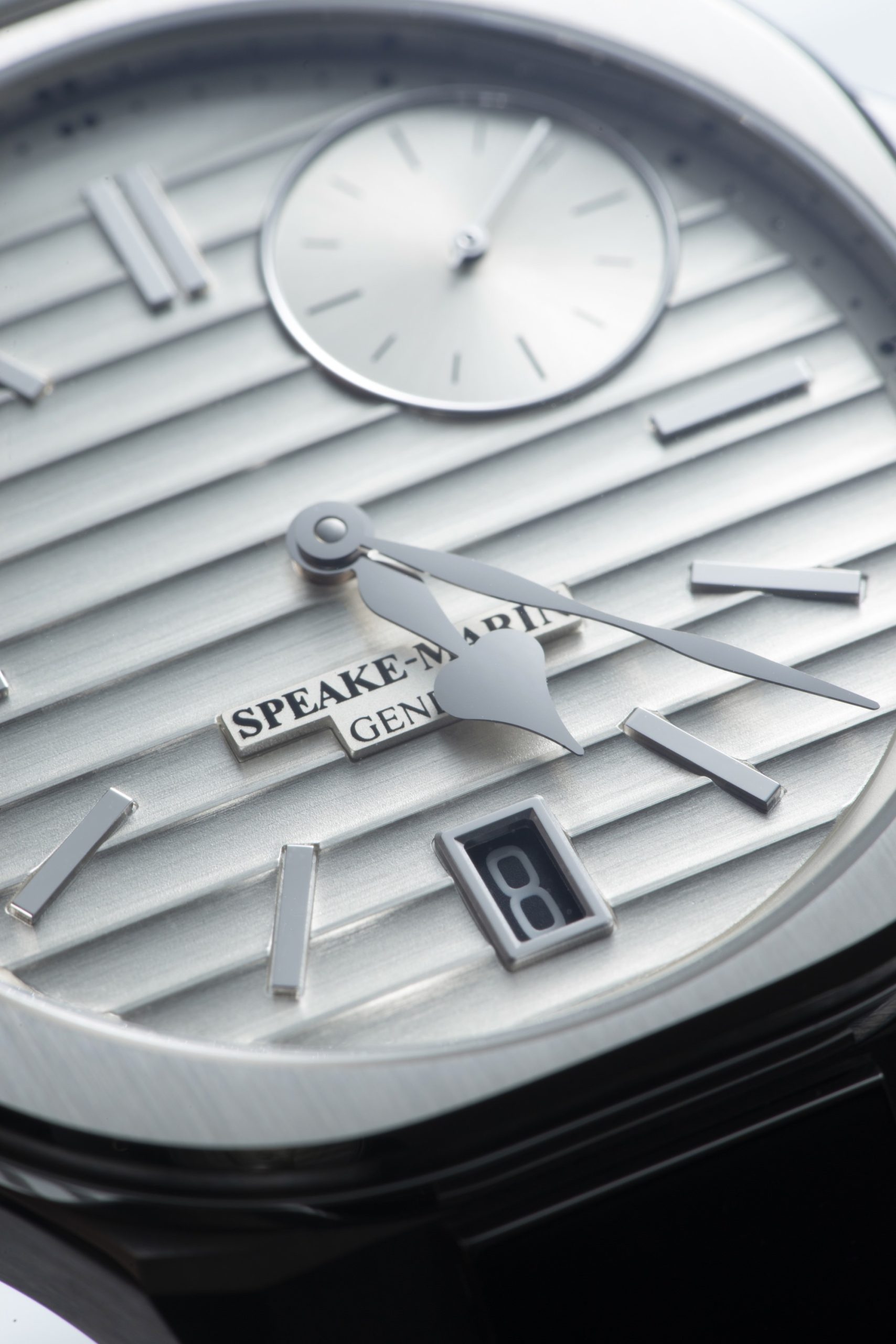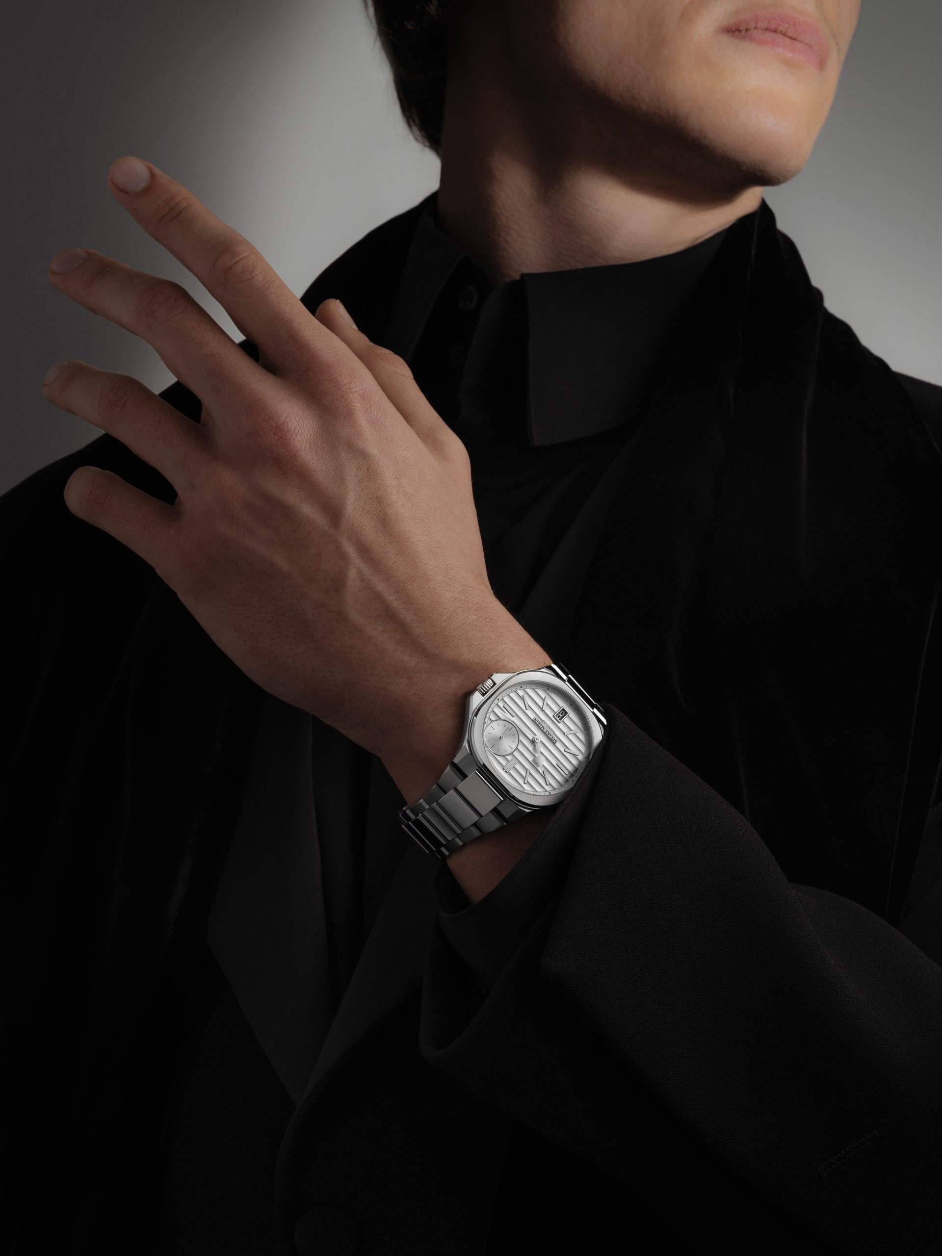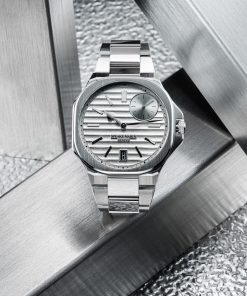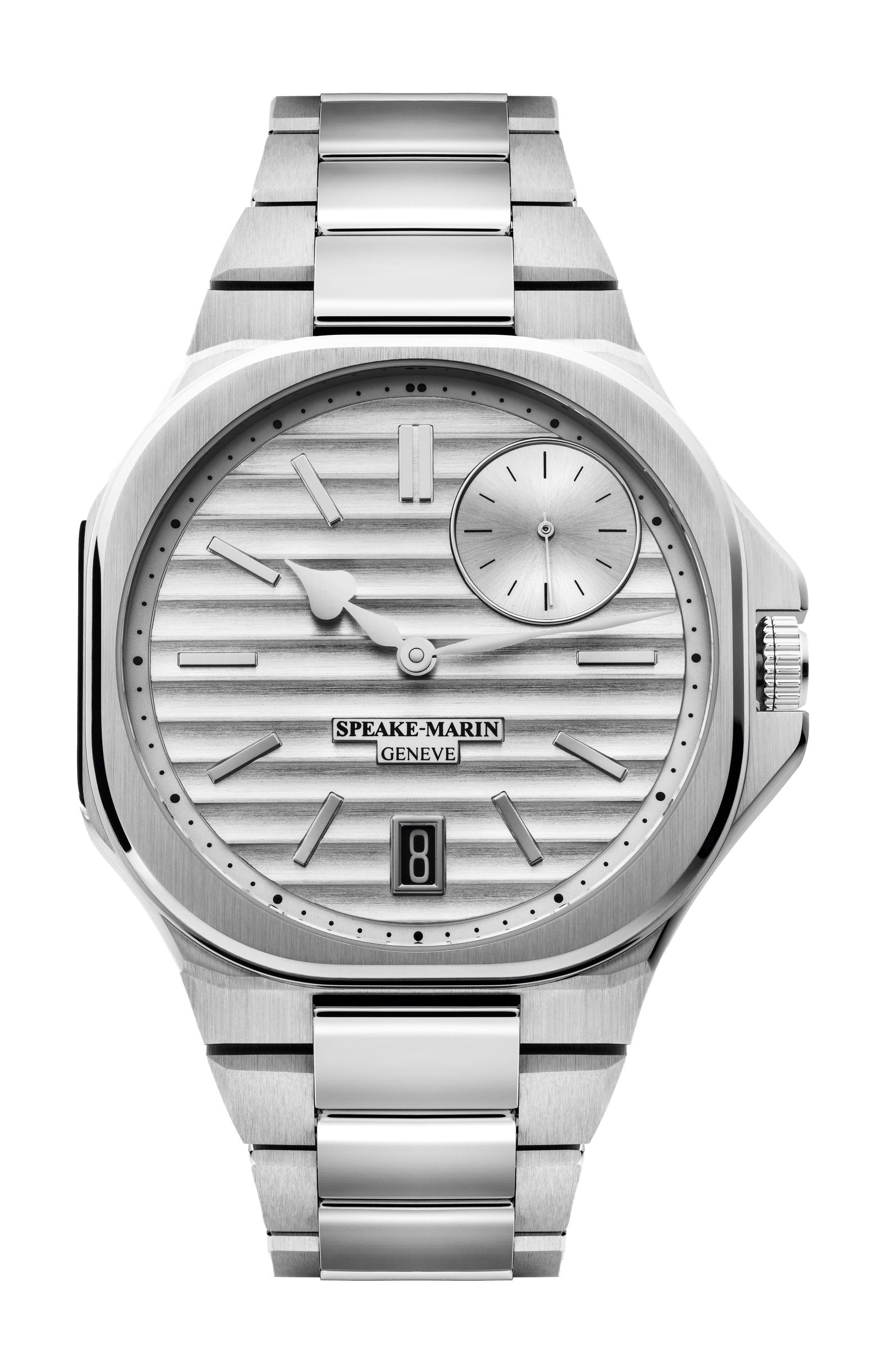 Introducing the Speake Marin Ripples Collection – a blend of contemporary style and timeless craftsmanship. This sport-chic watch is made entirely of stainless steel and pays homage to London’s iconic financial district with its unique “La City” case design. The latest addition to the Ripples collection is the Ripples Infinity Date, which was unveiled at Watches and Wonders 2024. This timepiece showcases sophistication and modernity with its metallic silver dial featuring twelve engraved horizontal ripples. It is equipped with the SMA03 TD movement designed and assembled by Speake Marin’s atelier, Le Cercle Des Horlogers. With its practical date display and sleek design, the Ripples Infinity Date is a versatile companion for any occasion,
