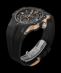Despite its complexity, the RM 33-03 wears effortlessly. Measuring 41.7 mm across and just 9.7 mm thick, it’s featherlight thanks to its advanced materials but feels reassuringly solid. The tripartite case, with polished and satin finishes, is secured by the brand’s signature titanium spline screws, while the strap flows naturally from the case and closes with a titanium folding buckle. Whether in full titanium or Carbon TPT® with gold accents, it’s a pure distillation of Richard Mille’s philosophy: cutting-edge materials, uncompromising engineering, and unmistakable design.