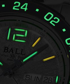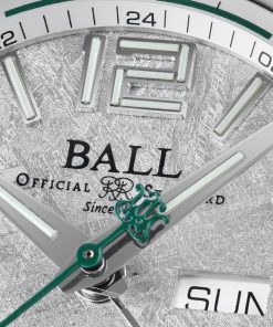 The Roadmaster Marine GMT is the first BALL model to feature a dial of the Gibeon meteorite, renowned as one of the most illustrious meteorites worldwide. Originating from a colossal asteroid’s detonation and journeying through space, this meteorite arrived on Earth approximately 600 million years ago. Its crystalline formations, known as Widmanstätten patterns, evolved over eons as its iron and nickel alloys gradually cooled, defying replication on Earth.