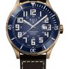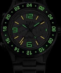 The Roadmaster Marine GMT now features enhanced brightness, with elongated micro gas tubes on the GMT and seconds hands. These groundbreaking tubes, self-sustaining in their luminosity, feature on the meteorite dial at each hour marker and on both hands, facilitating swift time readings even in the darkest environs. Teamed with the Super-LumiNova-coated ceramic bezel, three time zones are effortlessly discernible in pitch darkness.