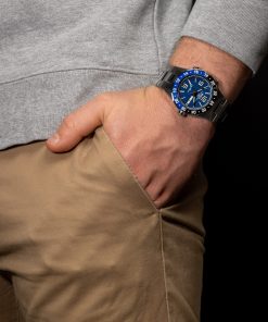 The Marine GMT is powered by the chronometer certified automatic caliber BALL RR1203-C, featuring day-date functions. It is water-resistant to 200m/660ft, anti-magnetic to 4,800A/m, and shock-resistant to 5,000Gs. The case is made of titanium, and the bracelet combines stainless steel and titanium parts. The movement is visible through a see-through case back, and the crown screws in for added resistance. This 40mm model comes in several color variations and can also be fitted with a rubber or NATO strap.