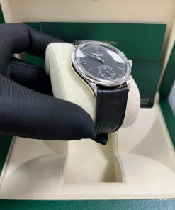 This elegant and understated watch features a slim case crowned with a bezel that is part domed and part finely fluted – the lower part being given an elegant fluting and the upper part domed.