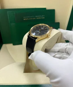 This elegant and understated watch features a slim case crowned with a bezel that is part domed and part finely fluted – the lower part being given an elegant fluting and the upper part domed.