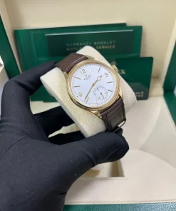 This elegant and understated watch features a slim case crowned with a bezel that is part domed and part finely fluted – the lower part being given an elegant fluting and the upper part domed.