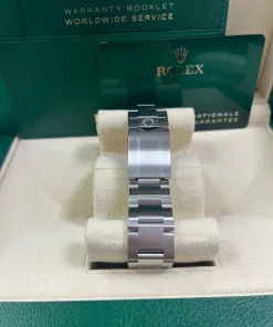 The Oyster bracelet is a perfect alchemy of form and function, aesthetics and technology, designed to be both robust and comfortable. It is equipped with an Oysterlock folding clasp, which prevents accidental opening and the Easylink comfort extension link, also exclusive to Rolex.