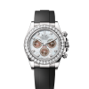 This Oyster Perpetual Cosmograph Daytona in 18 ct Everose gold, with a bright black and Sundust dial and an Oyster bracelet, features an 18 ct Everose gold bezel with an engraved tachymetric scale.