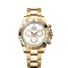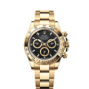 This Oyster Perpetual Cosmograph Daytona in 18 ct yellow gold, with a bright black and golden, diamond-set dial and an Oyster bracelet, features an 18 ct yellow gold bezel with an engraved tachymetric scale.